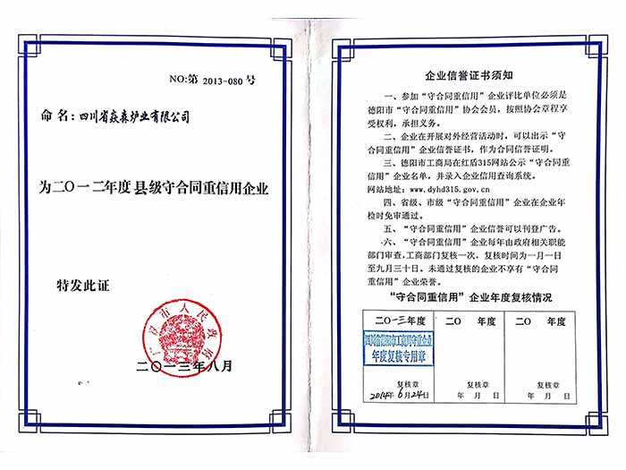 2、廣漢市守合同重信用企業、企業信用等級3A單位等榮譽資質